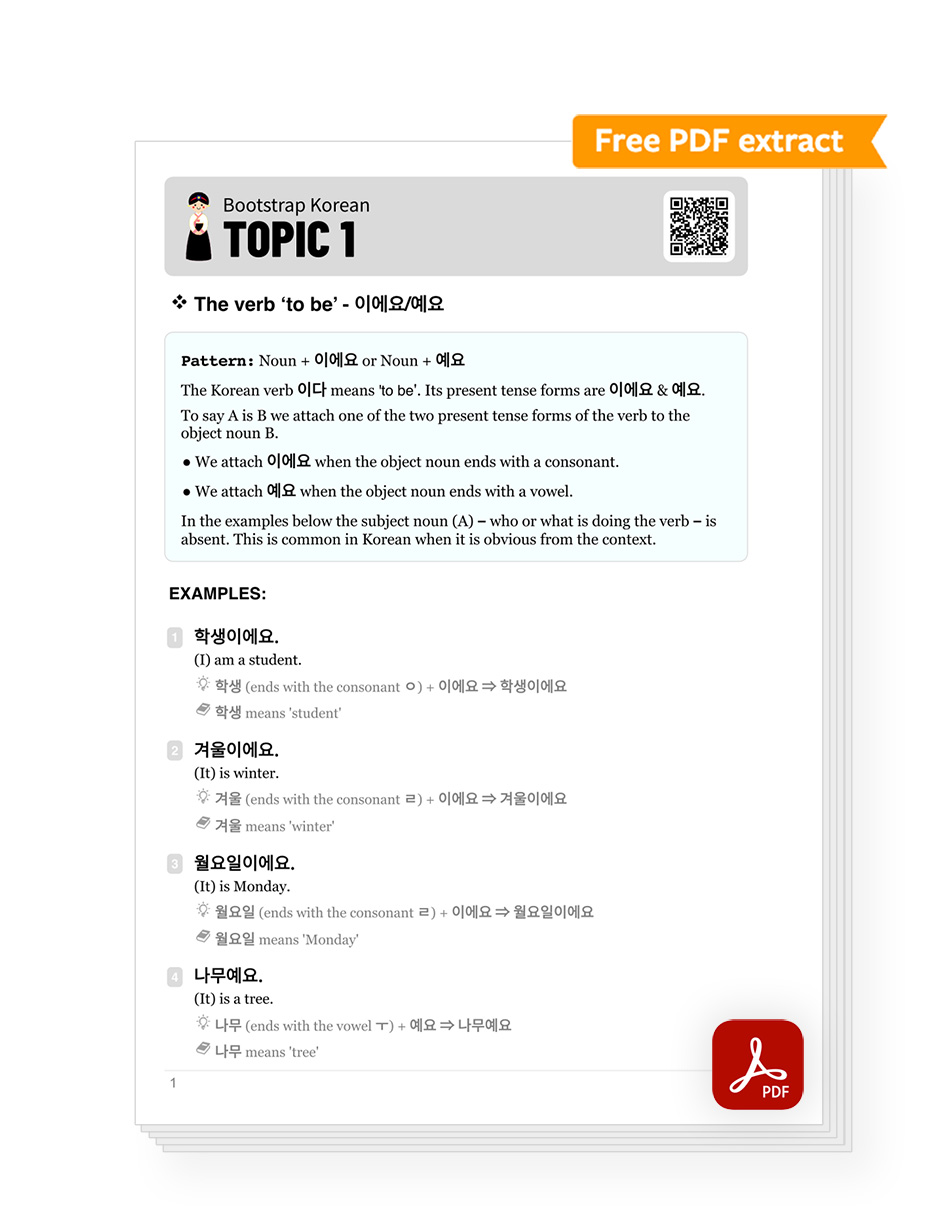 1. The verb ‘to be’ - 이에요/예요
